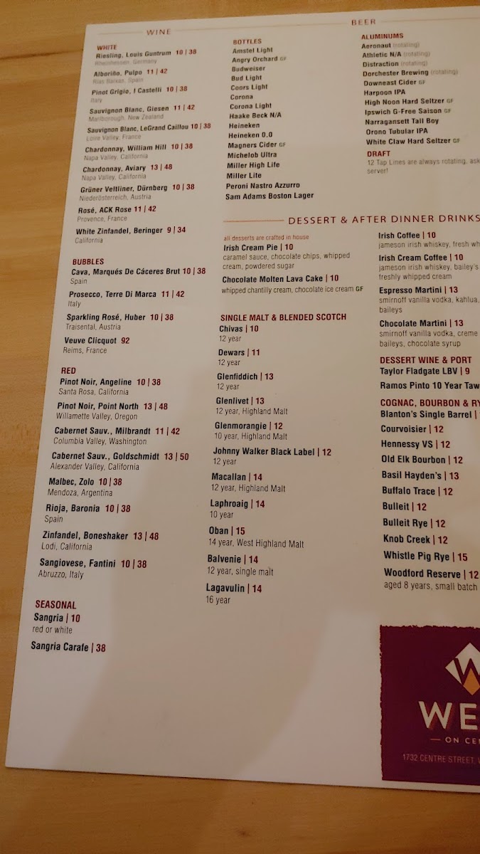 The West On Centre Menu offers a delightful mix of flavors that will satisfy all your cravings. Located at 1732 Centre St, West Roxbury, MA, this neighborhood gem serves up a variety of dishes perfect for any occasion, whether you're looking to grab a quick bite or enjoy a leisurely meal with friends. From mouthwatering burgers and savory sandwiches to fresh salads and indulgent desserts, there's something for everyone. Whether you're in the mood for a hearty meal or something light, each dish is made with quality ingredients that stand out in every bite. Plus, the cozy atmosphere makes it a great spot to enjoy your meal. Don't miss out on the experience and the delicious offerings waiting for you on the West On Centre Menu.
